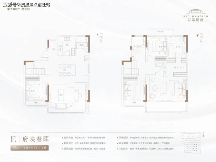 建面约168-200㎡叠墅,私享专梯入户,超宽瞰景阳台、约5.7M面宽客厅,约5.7M面宽露台,豪华主卧套房,集萃人生的从容和自在。