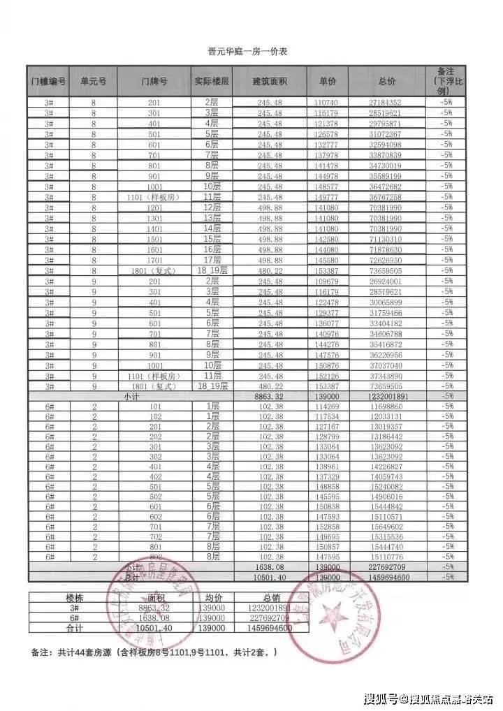 一房一价表: