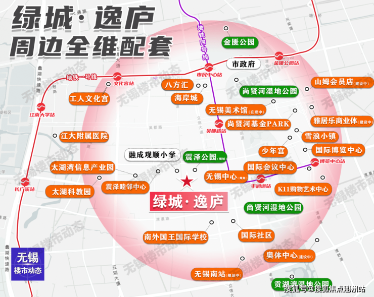 地块周围在建的奥体中心、K11 Select和规划的无锡中心,以及无锡海岸城、山姆会员店、太湖国际博览中心、国际会议中心、狄邦文理学校、融成观顺实验小学、江南大学附属医院等成熟配套为高品质人居赋能。