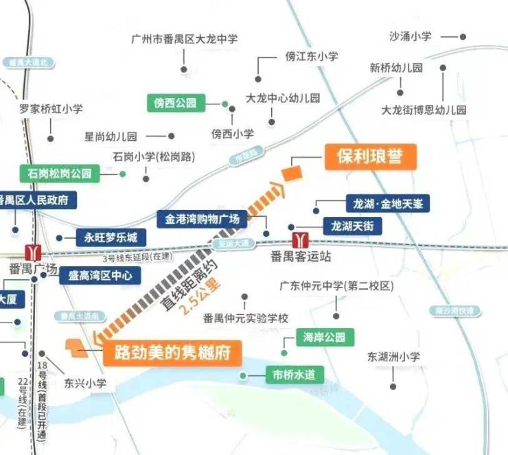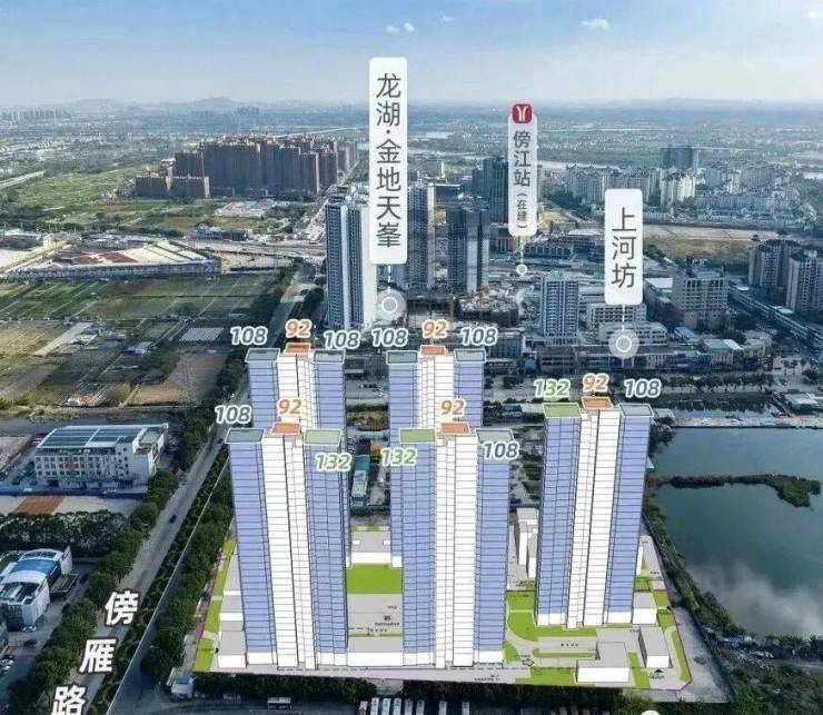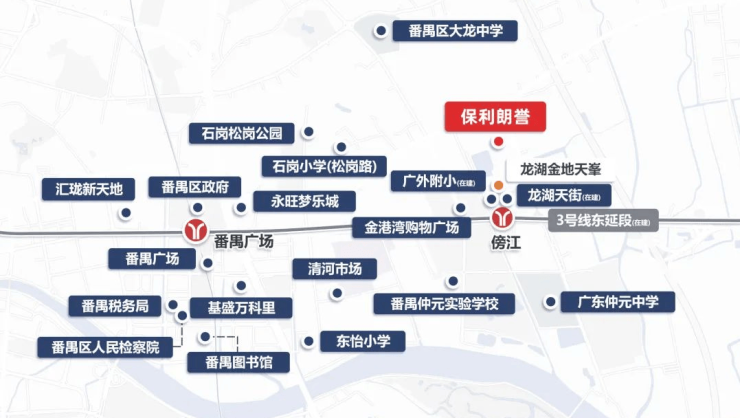 与3号线东延段傍江站直线距离约500米,从小区出发做地铁去番禺广场只需要一个站,乘坐地铁前往珠江新城也不需要换乘。
