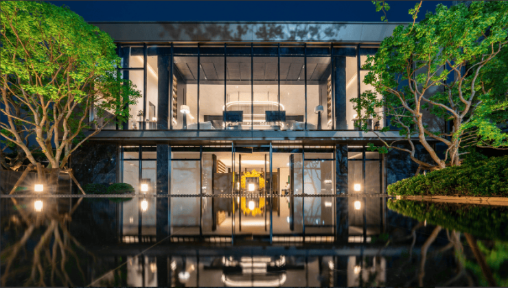 打造约5200㎡安缦系围合五进园林,体量相当于12个篮球场。通过层层递进的造景手法,为业主们勾勒了一幅“归家仿若度假”的生活场景。