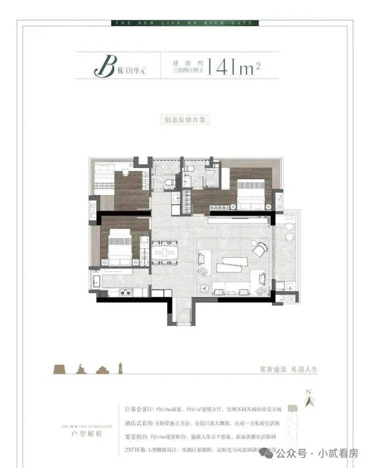 B栋01单元大方厅141㎡三房