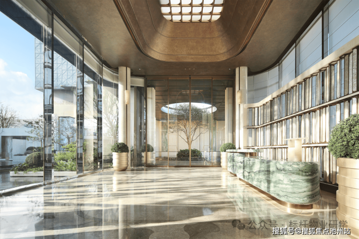 建筑美学上,高区以极简笔触勾勒,超纤细Bezel-less边框、大幅窗墙比与四面铝板公建化立面,彰显力量与序列感;低区基座选用白玫瑰石材,大面积玻璃与金属线条,营造温润亲近的体验。