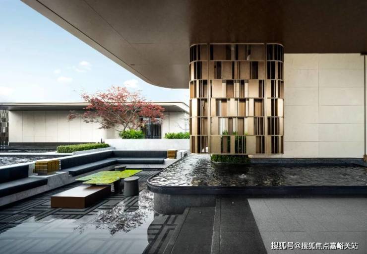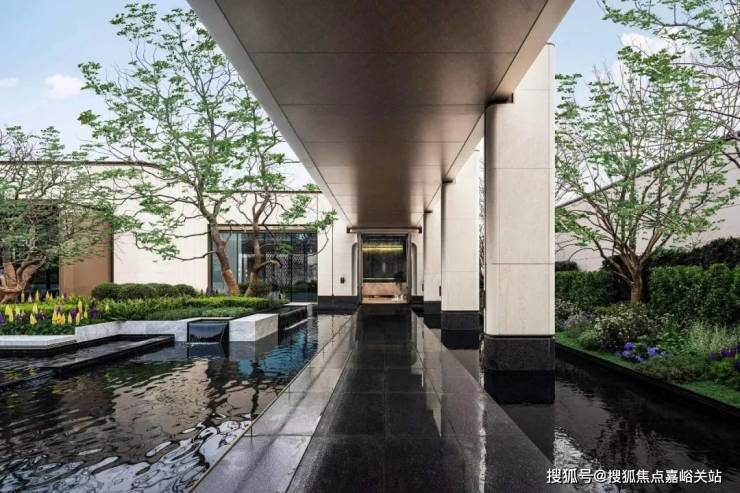 · 四重隐境水院:风雅会客厅出来经过风雨连廊区连接的就是项目售楼处,经过风雨连廊区的时候会看到项目打造的 约650平米纯净自然的水域界面,楼台与水瀑交融,享受回家的仪式感。 通透的艺术廊道,彰显了以人为本的设计理念,既能遮风挡雨,也可以从容漫步,整个无界水院采用了水系堆叠,层层变换,错落有致,美不胜收!