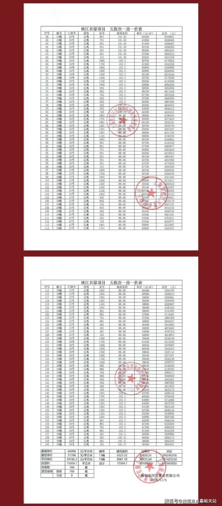 一房一价表: