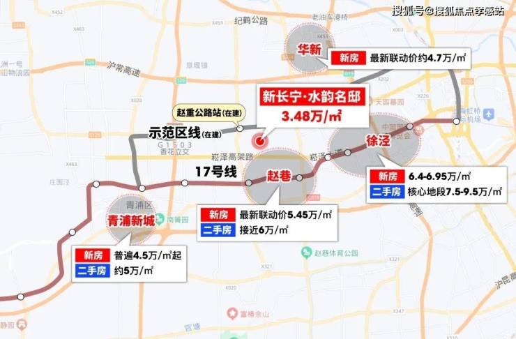 那均价也至少要4.5万/㎡!赵巷联动价5.45万/㎡,华新最高联动价4.7万/㎡,甚至17号线下游青浦新城已普遍4.5万/㎡起。