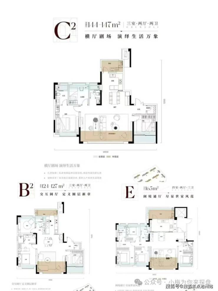 小梅目前打听到预计9月份首开,所有楼栋都是2梯2户,首开11号楼和12号楼,面积段106—124—144-—154——165。户型图如下
