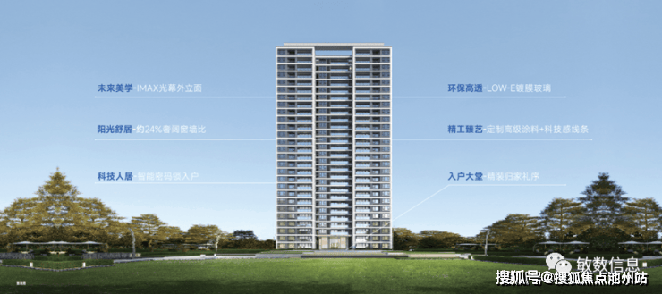 项目创作的IMAX平层4大空间法,从罕见双阳台、窗堂同宽空间打造、客餐厨同一视野轴区、自由可变飘窗等方面,营造平层产品的舒朗美学;同时把LOW-E镀膜玻璃运用到外立面中,又用约24%的奢阔窗墙比,让室内更加通透,赋予建筑令人眼前一亮的美感。