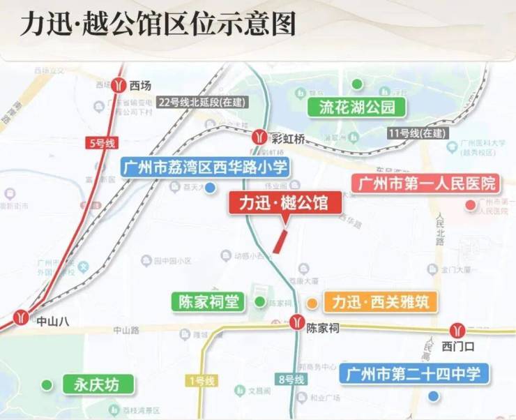 项目地块所处的位置,在老荔湾康王北路,距离越秀仅一公里,500米内拥双地铁:陈家祠站(1/8号线)和彩虹桥站(8/11/13/22号线),交通很方便。