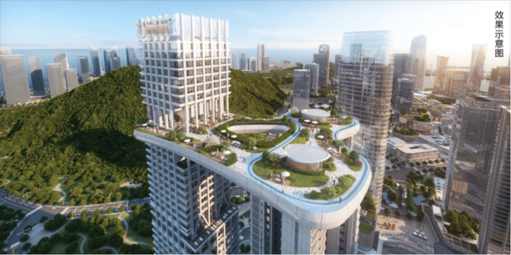空中还设计了一个约150米高的云台,并配有高端酒店、荧光跑道和无边际泳池,揽山瞰海,景观视野无敌,享有“一览众山小”豪迈的人生体验。