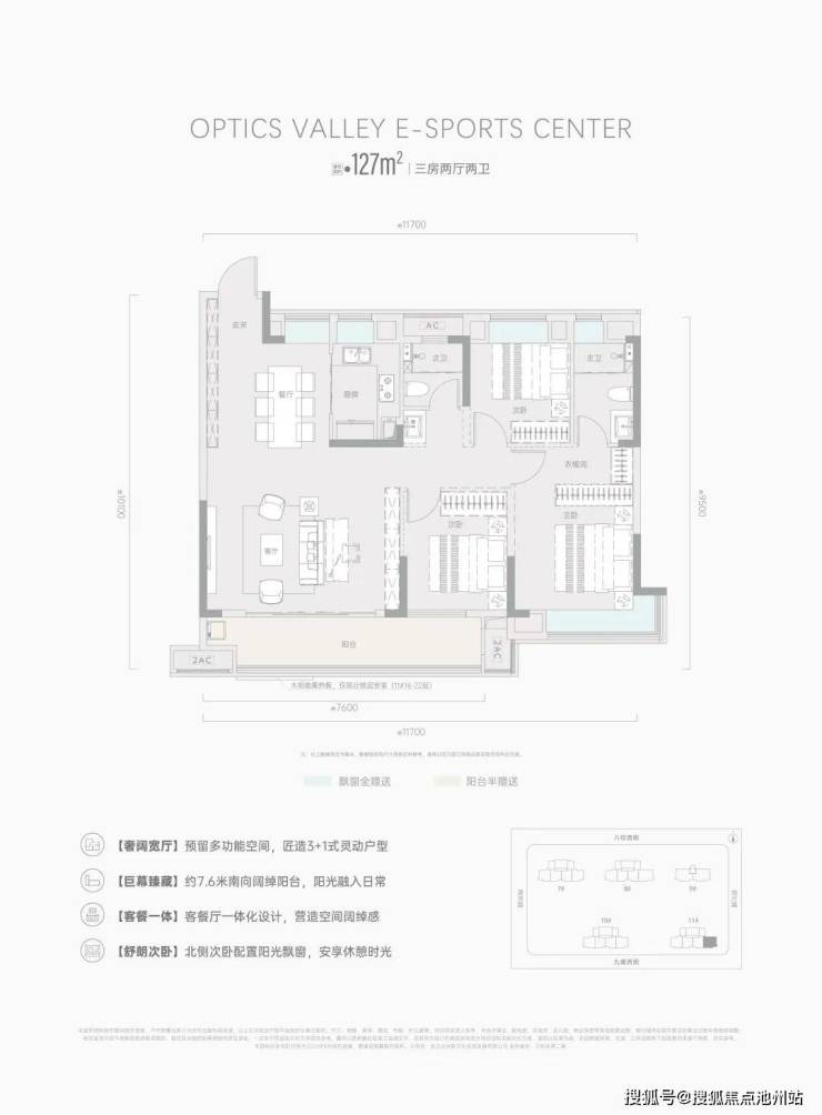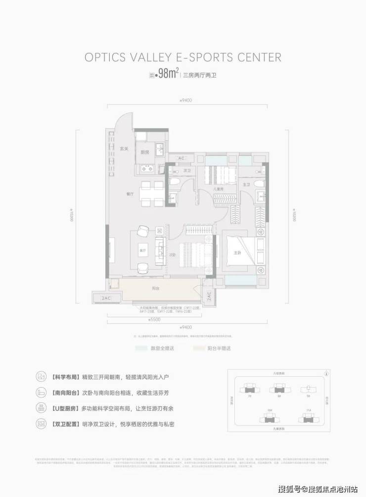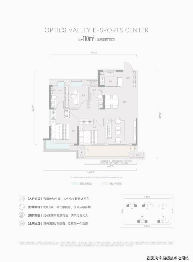 万和竞界二期推出的爆款户型,为建面约94-98㎡、107-111㎡毛坯,三房两卫配置,层高约3米,超9米南向面宽,备受光谷青年睐。