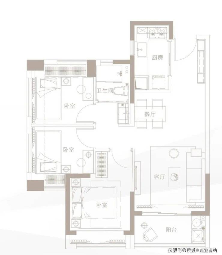 三卧室均带飘窗,空间利用率高