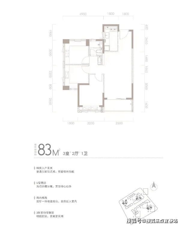 建面约83㎡ 3房2厅1卫