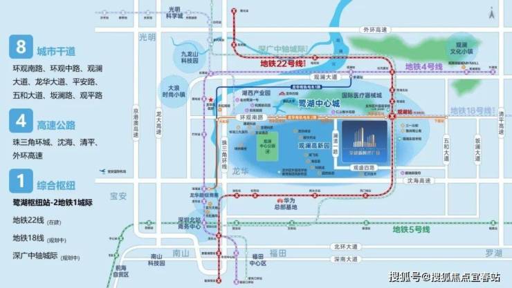 龙华产核——鹭湖中心城地处龙华万亿级数字经济圈、梅观创新走廊的交汇中心,亦是龙华六大重点片区的核心枢纽