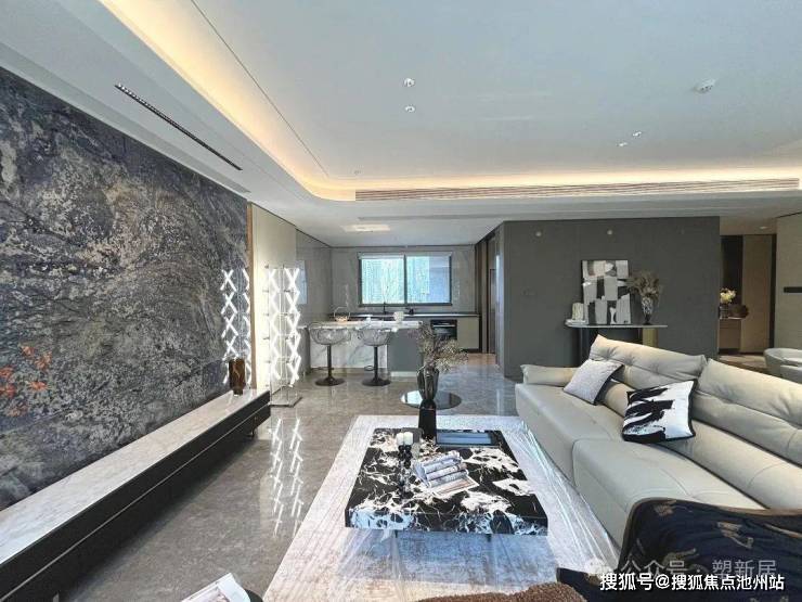 建筑设计:采用高定奢侈品设计理念,外立面以蓝灰色玻璃幕墙搭配弧形铝板,塑造出珠宝般璀璨的建筑形态。观宸二期城市会客厅由板上板下两部分空间组合而成,城市花园厅面向城市开放,集回车落客、入口门厅、会客等候多种功能于一体,下沉庭院把跌瀑与生机绿意从园区引下,使整个城市花园厅空间层次丰富。