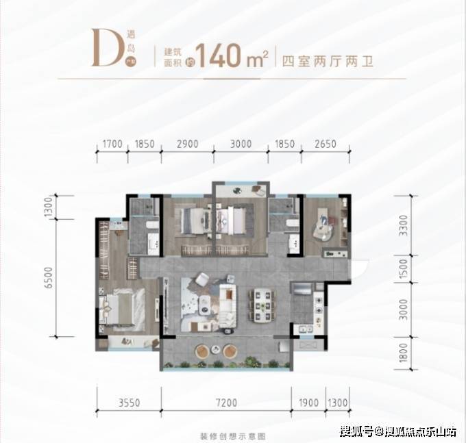 建面约142㎡循浪户型四室两厅两卫一方阔尺阳台,还原生活无限可能