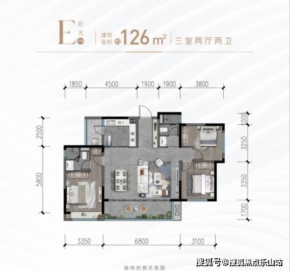建面约126㎡拾光户型三室两厅两卫奢阔三居,乐享进阶品质生活