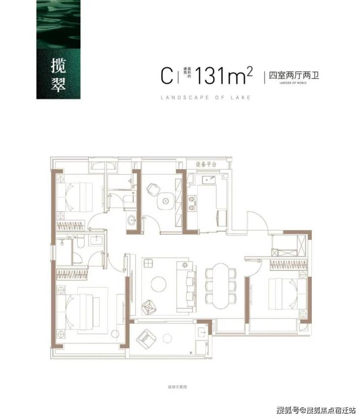 建面约131㎡4房2厅2卫,该户型做到了四开间朝南+南北通透+主卧套房设计+全卧室带飘窗+卫生间干湿分离,是一步到位的大4房户型。