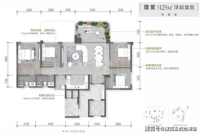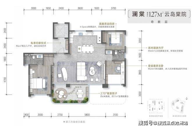 建筑面积区间125-143m²;露台约16-21m²,6M挑空,图中有户型点评,127户型缺点多。