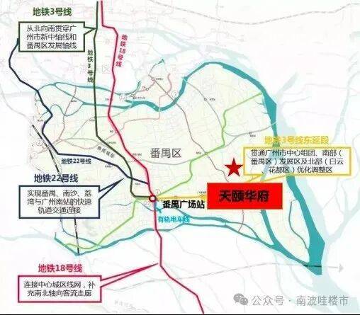 四地铁:地铁3号线,18号线(预计今年通车)、22号线(预计今年通车)、17号线(在建)番禺广场交汇站