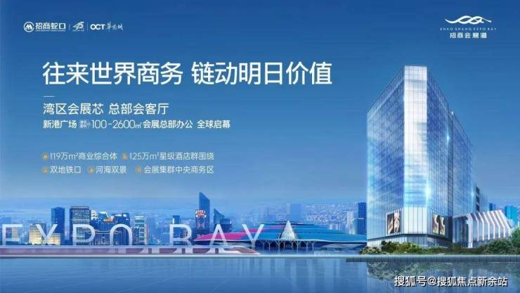 抢占前海先机,就选招商会展港・新港广场!建面 100-2600㎡灵动空间,特价 2.45 万 /㎡起。12/20 号线【国展北站】无缝连接,直抵宝安国际机场。约 2 万㎡会展湾花园里已开业,配套醇熟。现楼发售,即买即用,为企业发展赋能,开启商务新篇 !