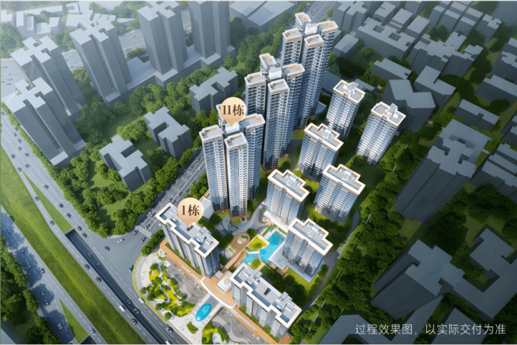 3、整个社区由11栋楼组成,包括3栋塔楼+8栋板楼,布局讲究。