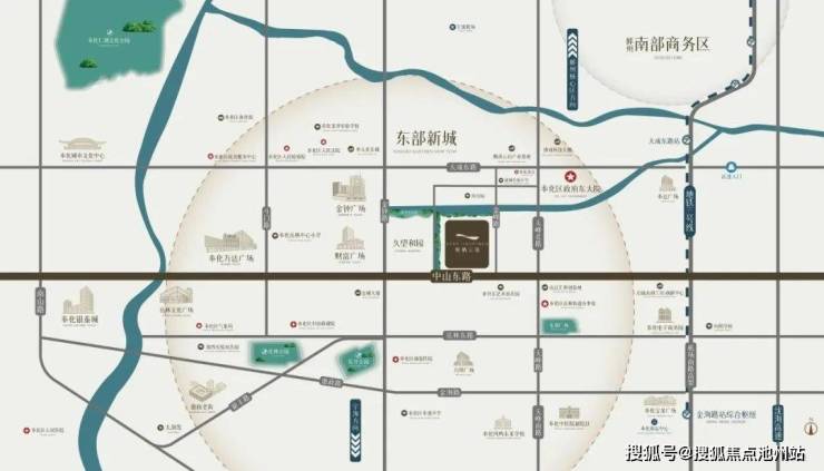 奉化东部新城以沿线TOD站点——大成东路站为轴心,同时机场南路高架沿线、城市核心纵轴线——金钟路、三条横轴线——大成路、中山路、金海路将奉化最为核心的精华尽收,真正让奉化区融入宁波主城。