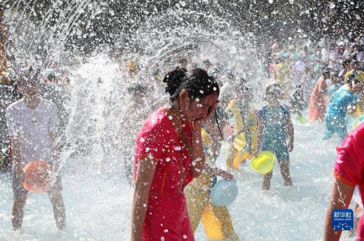 1月25日,游客在西双版纳傣族园景区参加“天天泼水节”活动。新华社发(李云生 摄)