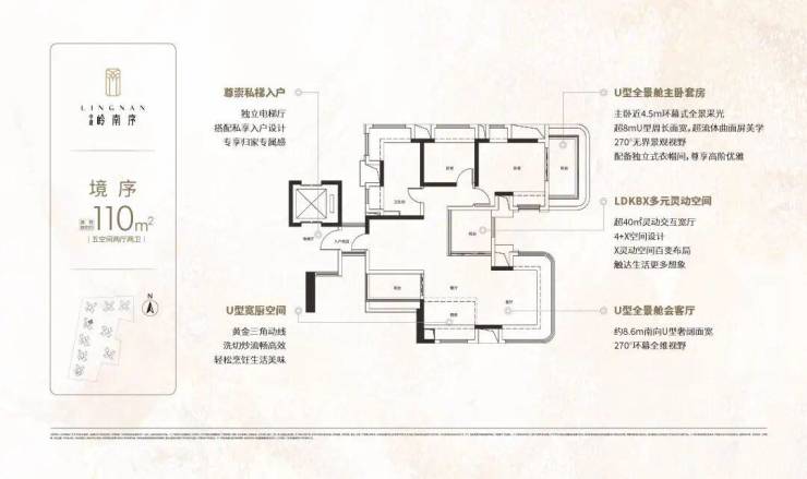 110㎡南厅户型:单价3.7~4.3万/㎡