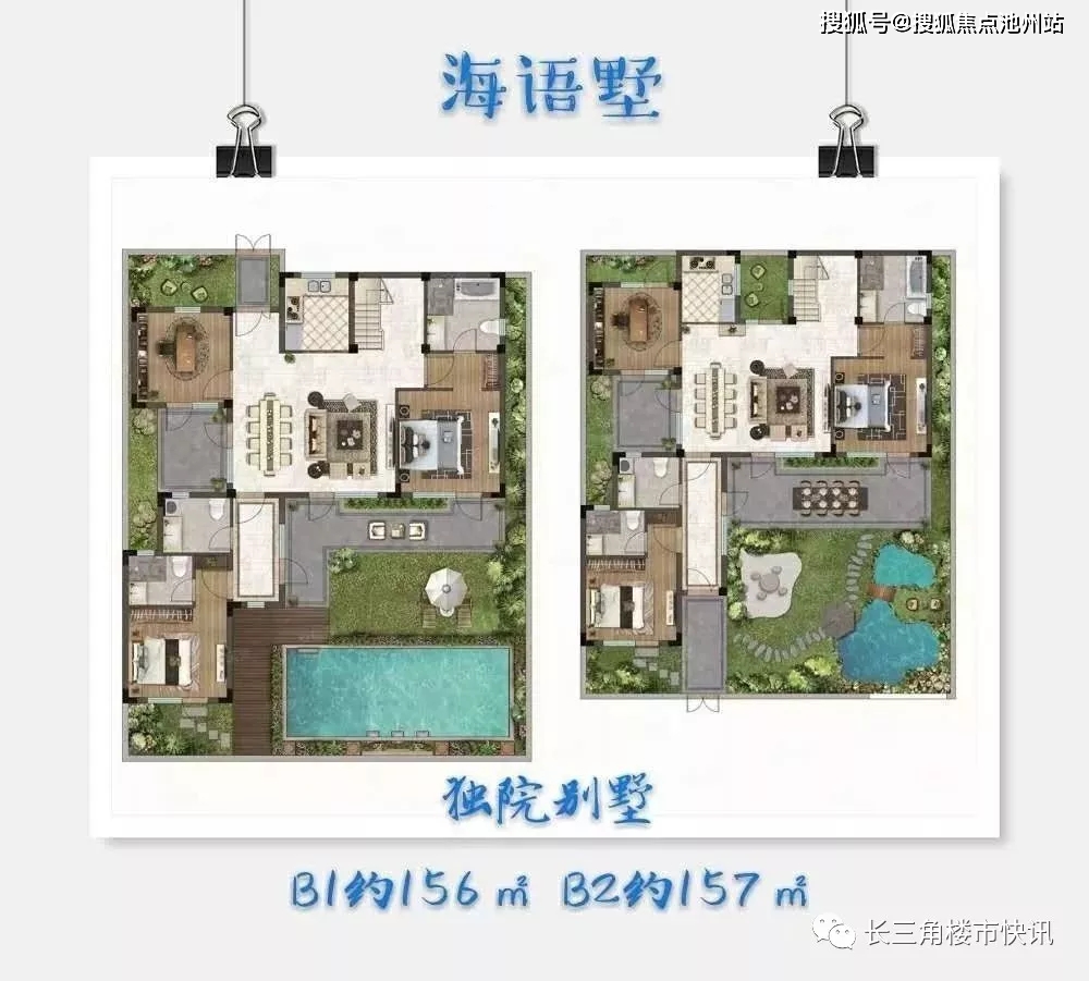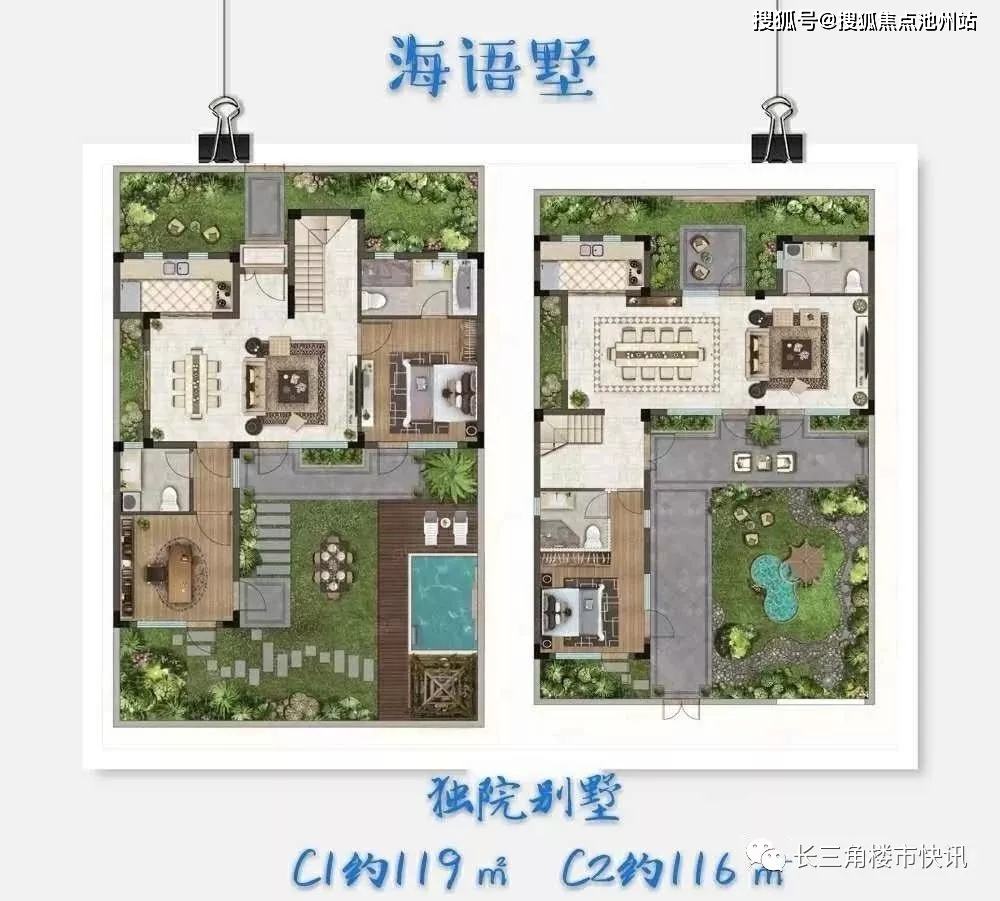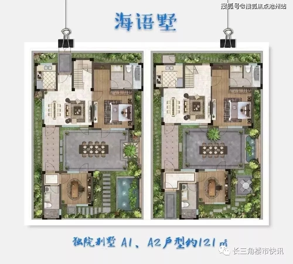 容积率低至0.3的类独栋合院别墅——海语墅,建筑面积约116m2-157m2,采用较新围合式布局,一墅多院、高墙大院的设计,极大的提升了私密性,强化了业主的领域感;大开间的全落地玻璃窗,将一楼空间与私家庭院优质听的融合在了一起,使住户步步有景,移步景异。
