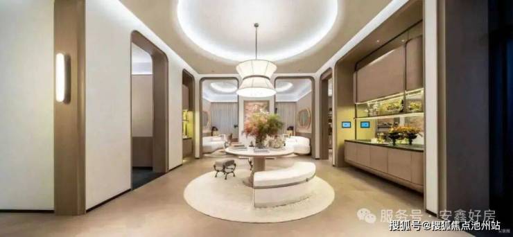光瀑大厅:发光水幕社区大堂,5-6米高奢石幕墙与动态水幕,打造和平大道上的美学地标。