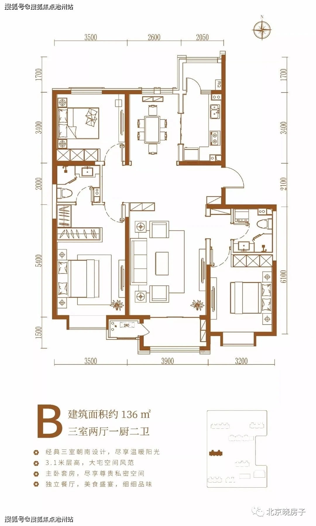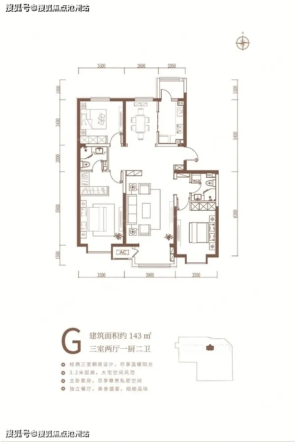 南北通透双卫三居136|143㎡: