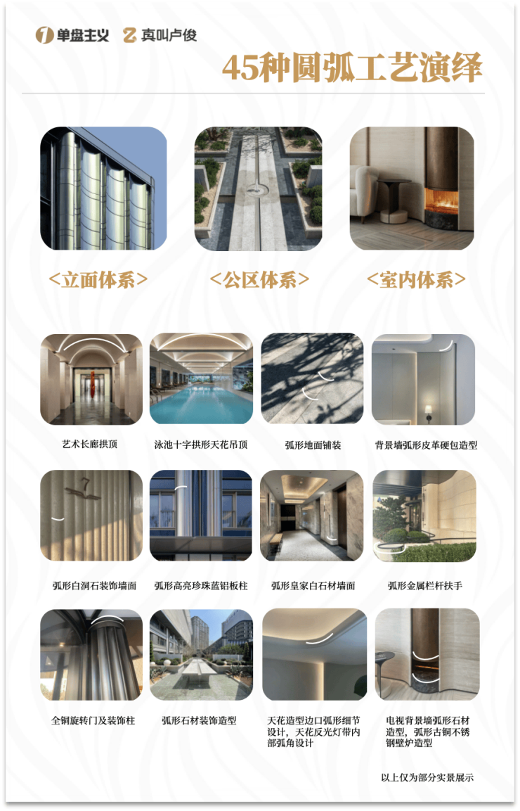 而且是涵盖项目立面、景观公区以及室内三大体系,我敢说这样的“含弧量”放在全国豪宅也是前所未见