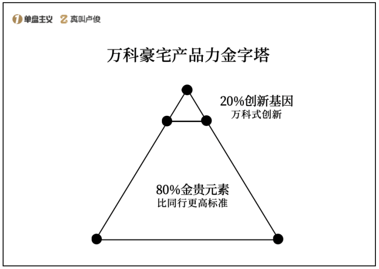在表达豪宅金贵的产品基座上,万科做到80%的部分超越同行的同时,另外位于金字塔顶层的20%