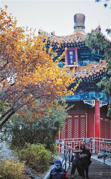 10月30日,景山公园,游客走下山。新京报记者 薛珺 摄