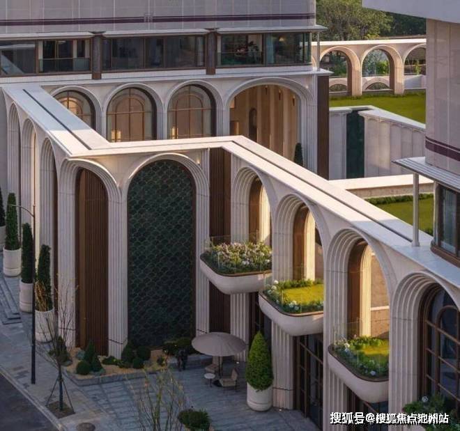 与此同时,全立体抬升的创新举措,也营造了空中私密花园的意境。庄园营造哲学与东方园林神韵融合而成的景观,被置于约6米高的抬地之上,仿若悬浮于空中,天然地从物理层面就隔绝了外界的喧嚣及变电站等相关不利因素的影响,形成更静谧,也更私密的圈层生活场域。