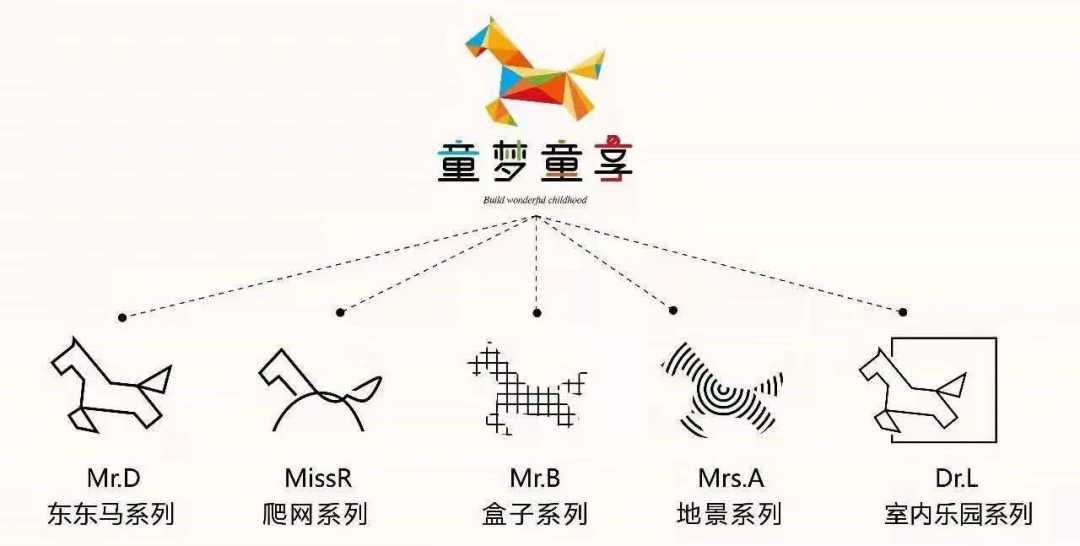 以炫丽鲜明的东东马IP为主设计元素,通过延伸爬网、滑梯、瞭望台、竖向筒网等丰富空间,以达到游戏项目丰富性与身体发展锻炼多样性的目的,有趣有益。