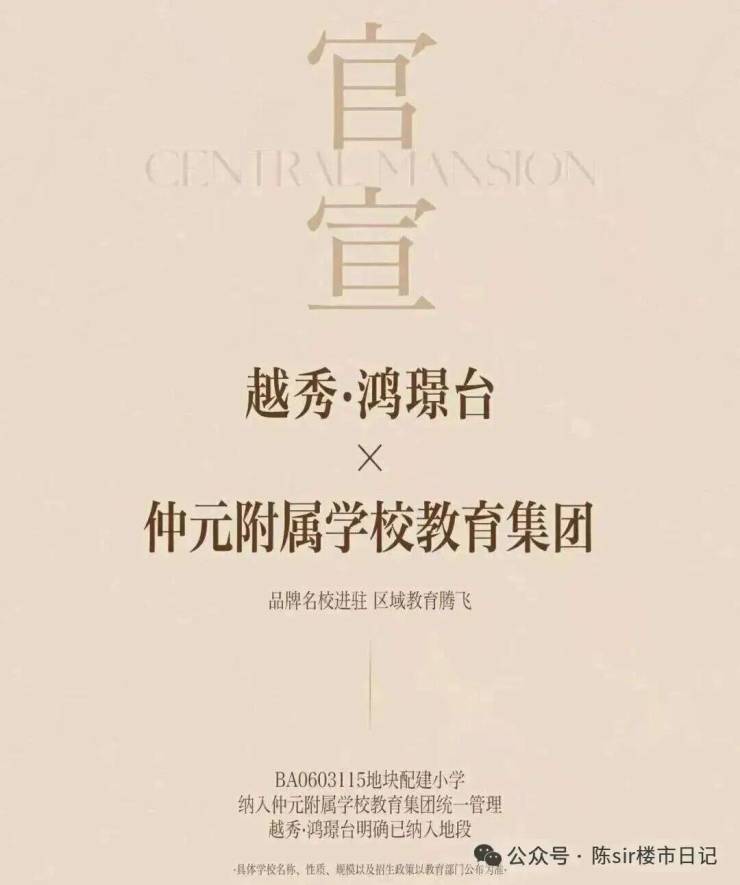 在开盘前,楼盘官宣了BA0603115地块建成后将正式纳入仲元附属学校教育集团统一管理,并且明确了越秀鸿璟台纳入招生范围。
