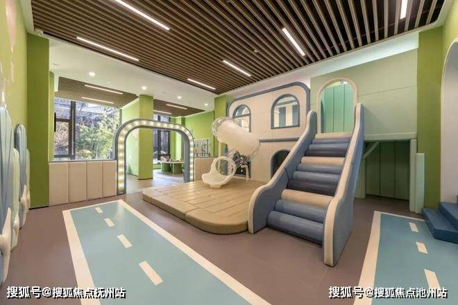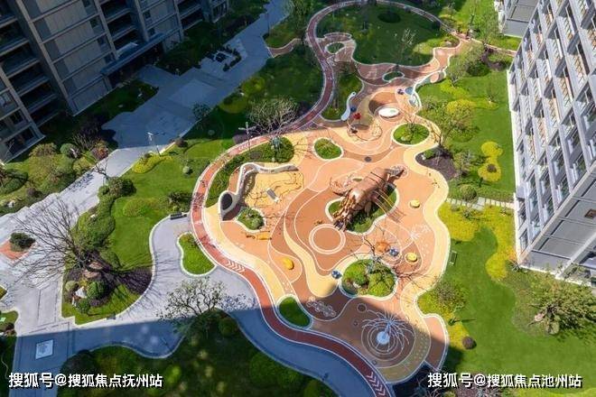 楼幢间距约50米,宽敞的楼间距下,组团之间的景观园林也不是“小打小闹” ,比如大面积的阳光草坪、约900㎡的户外儿童游乐区等,围绕组团南、北组团各规划了约400米的跑步道。