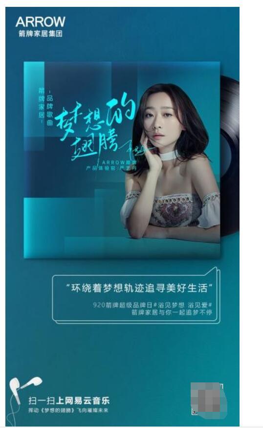 箭牌家居产品体验官严艺丹推出了品牌歌曲《梦想的翅膀》,同时联手网易云音乐访谈节目《超级面对面》,解读歌曲创作背后的故事及歌词创作背后的品牌内涵,运用明星+原创音乐的组合拳,突出“梦想”与“智慧”的理念。