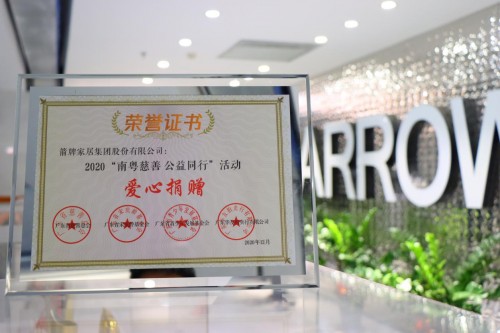由广东省民政厅指导,广东省社会组织总会支持,广东省慈善总会等共同主办的2020“南粤慈善 公益同行”活动在广州东方宾馆举行。箭牌家居集团凭借在慈善公益事业领域所做出的突出贡献,荣膺“2020年爱心捐赠”称号。