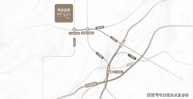 地铁:直线距离16号线龙城公园站约800m,两站直达大运枢纽站,换乘3/14号线和深大城际(建设中);直线距离21号线大运北站(规划中)约600m;快速连接全城。