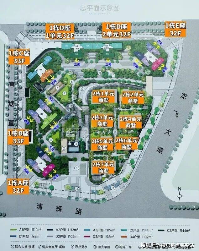 【梯户比】:A/B/E座3梯6户;C座2梯4户;D座2梯3户