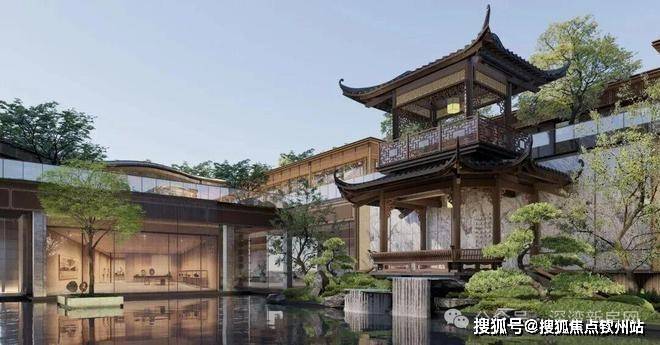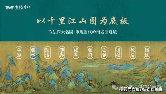 园林设计以《千里江山图》为灵感蓝本,巧妙融合岭南四大名园精髓,复刻佛山梁园"半边亭"。通过"漫卷云章"、"金水澜庭"、"琉璃水院"三进式景观轴线,呈现移步换景的东方美学。