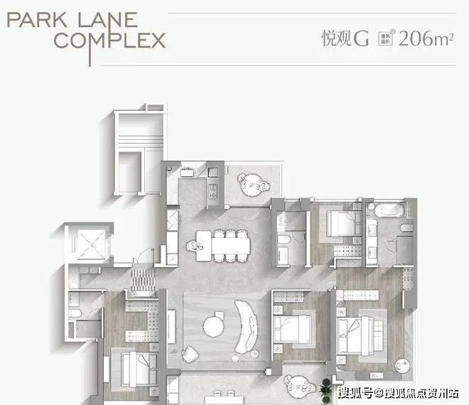 200平方米以上大平层:定位高端改善,如206平方米户型采用LDKG一体化设计,配备9.3米IMAX观景阳台及40平方米主卧套房,私密性与奢适度兼备。