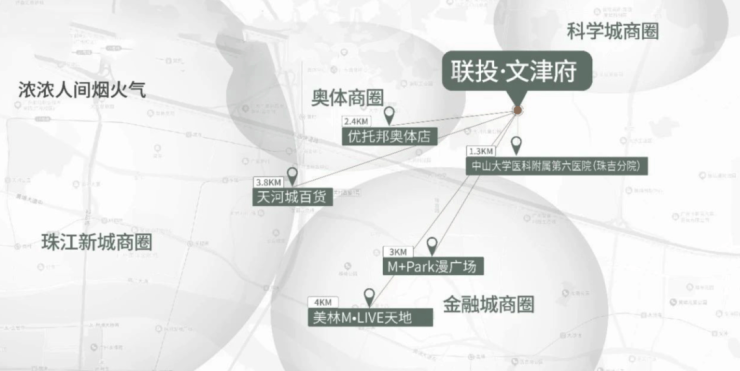项目周边目前没什么大型商业,日常生活所需只能依赖小区自带的底商,以后能不能开起来也是个未知数,大型商业都要去到几公里外了,近点的优托邦{4.3公里}、东圃天河城{6.6公里}、萝岗万达{7.6公里}等,基本都得驱车前往了。