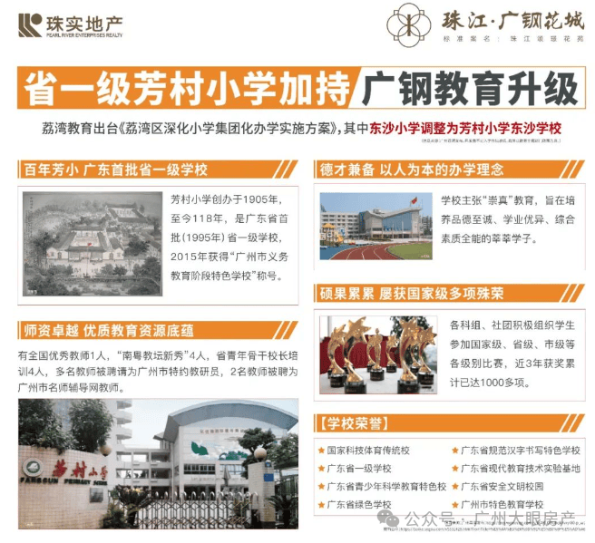 项目自身只配建了一所幼儿园,小学根据政策周边的学校,周边有东沙小学、新东小学以及广钢南区的华附荔湾小学等,具体读哪个就看交楼后教育部门的划分了。