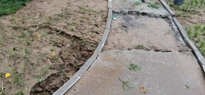 房山共有产权房雨后地面塌陷、围墙倒塌