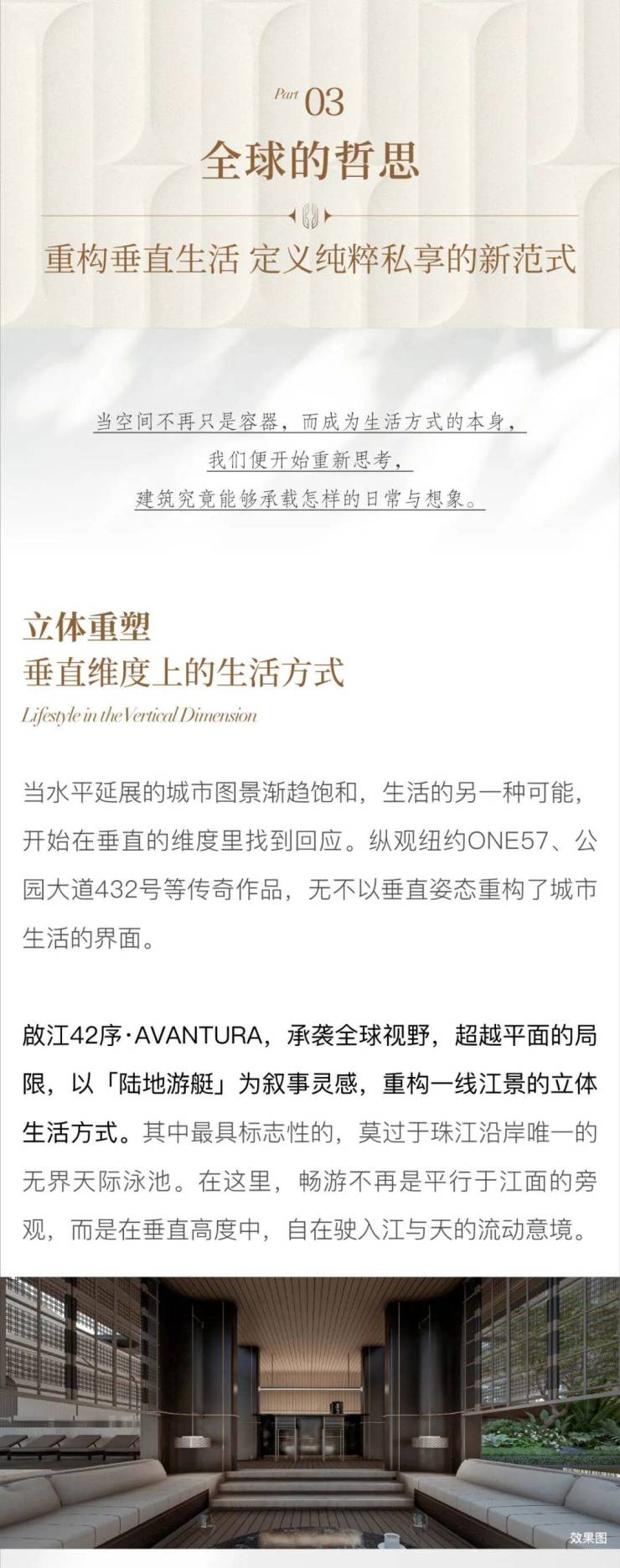 核心理念: 位于广州“珠江至贵一英里”的黄金岸线,定位为全球先锋生活方式的塔尖藏品,仅推出42席稀缺豪宅。