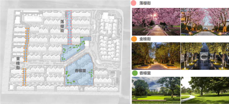 同时,项目还设置了樱花道、香樟林、金桂里、红梅巷,让四季美景都能尽收眼底。